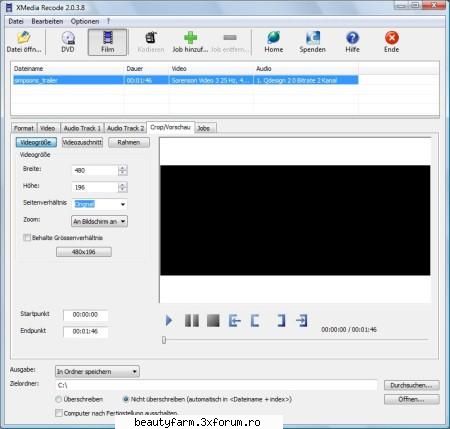 * Video Editing * Parts of the video cut off (crop) * With freely selectable frame color (padding) * Color Correction (brightness, contrast, gamma, hue, saturation) * Drag-n-drop of video directly on the encoder * Selecting the picture size (1:1, 3:2, 4:3, 5:4, 5:6, 11:9,16:9, 16:10, 2.21:1) * Zoom (no letterbox, the media, Pan Scan, Fit to Screen) * Direct Stream Copy function * 2-Pass Encoding * Volume correction * Volume Normalize * Framerate, bitrate, resolution can be adjusted * Can stream audio from most video formats, extract * Creates DVD copies of the Pocket PC * Creates DVD copies for your mobile phone * Creates DVD copies for the iPod and iPhone * Creates DVD copies for the PSP and PS3